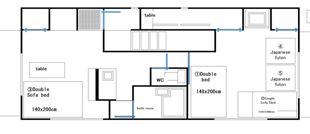【Bed room】 1 double bed・1 single bed・2 japanese futon