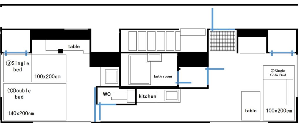 【Bed Room】 1 double bed・1 single bed・ loft single bed