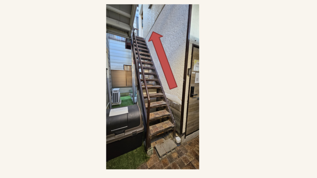 階段は狭くて急です。大きな荷物は大変です。
