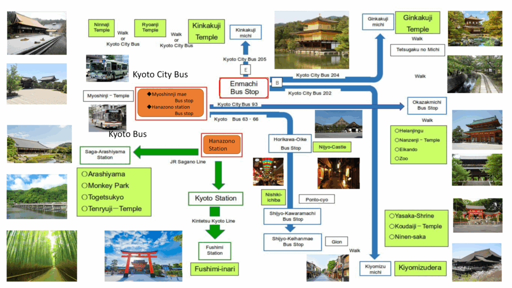 450m to Hanazono Station. 270m to Umazukacyo bus stop.400m to Myoushinji-mae bus stop.